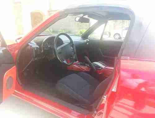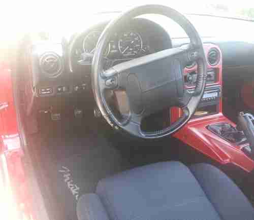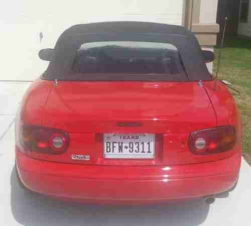 1993 Mazda Miata MX-5. Excellent Condition and runs tip-top! Only 62,000 Miles. 16 Valve In Line 4 Cylinder. Garage Kept. Complete new $2000 brake system. From front to back. The whole braking system is all new. New Racing Wheels and Tires. The body is in tip-top condition. New Candy Apple Red Paint Job! Speakers in the Headrest. The convertible top is in excellent condition. Never wrecked. Background check on this car will make you happy. This hasPower Windows. Cruise Control. CD player. The engine is also in tip-top condition and has a paint job as well a paint job inside of red. The only thing I can find wrong with the car is the antenna will not go up or down so it is locked in the half way up position but could be an easy fix. This is a collectors dream.