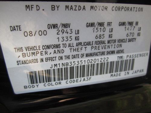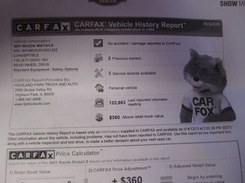 2001 Mazda Miata Convertible 4 Cyl 1.8l 5 Speed A/c 2 Owner Runs Great!! Fun!! on 2040-cars