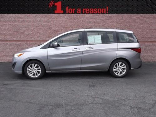For families looking for fuel-efficient, maneuverable, and roomy transportation?with a fun-to-drive feel and some luxury amenities thrown in?our 2012 Mazda5 is your best and only choice! You'll enjoy the power that comes from the fuel efficient new for 2012 2.5-liter 4 cylinder engine. This nice motor has plenty of power to get you around town with ease and passing the slow folks on the interstate! The interior is perfectly configured for small or growing families; there's an abundance of storage areas and cup holders! Even more features seem perfectly designed for busy moms or those with their hands full! This Mazda is a kid hauler galore! Whether you see the Mazda5 as a seven-eighths-scale minivan or a compact wagon with the roof raised and sliding side doors, it will meet your needs and exceed your expectations!Our Mazda5 brings eager, nimble character to the driver's seat in a way that few other SUVs or minivans do. Print this page and call us Now... We Know You Will Enjoy Your Test Drive Towards Ownership! Hurry in today! We'll have the keys waiting for you! PLEASE CALL TOLL FREE 877-357-9147 FOR DETAILS. Give us a call today, and let's see how we can help!
