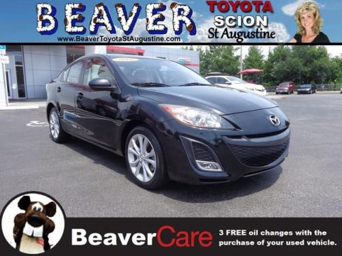 Are you still driving around that old thing? Come on down today and get into this fantastic-looking 2010 Mazda Mazda3! Designated by Consumer Guide as a Compact Car Best Buy in 2010. When H2O starts showing up in the weather forecast, the FWD power delivery will help keep you in control of things. It is nicely equipped with features such as Mazda3 s Sport, 4D Sedan, 2.5L 4-Cylinder DOHC 16V VVT, 6-Speed Manual with Overdrive, FWD, Black, MUST SEE!, NONSmoker, One Owner, and PRISTINE. Black 2010 Beaver Mazda Mazda3 s is a 4D Sedan FWD . This Florida Sedan has a 2.5L 4-Cylinder DOHC 16V VVT engine. Call right now and schedule a test drive. Ask for stock number 329594, the Florida 2010 Beaver Mazda Mazda3 . Shop Us Online at www.beavertoyotastaugustine.com. Serving Jacksonville, Palm Coast, Daytona, Gainesville and St Augustine. Beaver Toyota St Augustine on 2995 US Hwy 1 South in St Augustine.