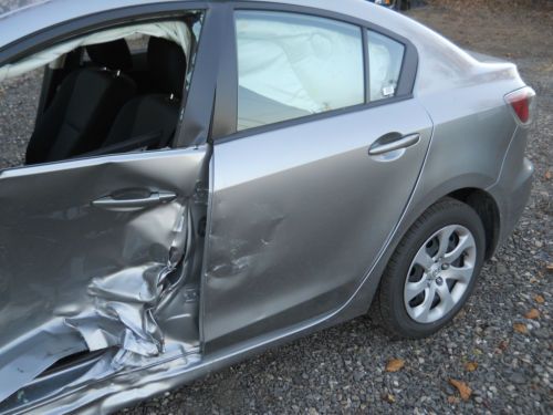 2013 Mazda 3 sedan hit in the side needs drivers door with door post and bottom rocker fixed rear door needs repair, roof curtain on drivers side deployed and drivers seat deployed, car runs and yard drives being sold with Pa salvage title. Any questions please contact Jim Hurley at 215-416-5282.