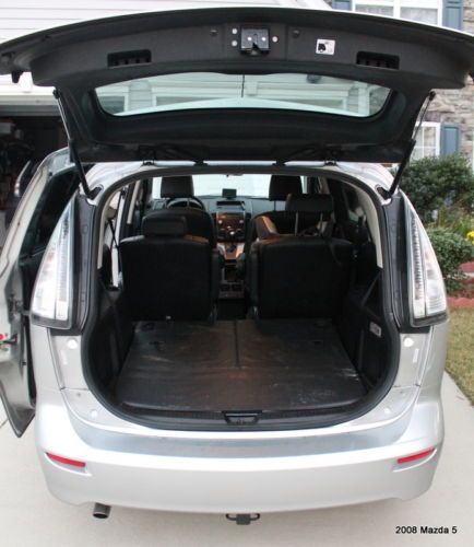 CARFAX report is available (two small rear-end collisions in history - fully repaired (bumper replacement) - looks like new). Top of the line Grand Touring Edition includes: - three rows of leather seating - power sunroof - 5-speed automatic - power windows/locks - fog lights - 17" alloy wheels - xenon headlight / LED tail lights - fuel efficient 153-hp 4-cylinder: 27MPG highway / 21MPG city - drives like a Mazda (does not feel like a van when driving!) - minor scratch of front bumper (see photo) - fully configurable seats: 3rd and 2nd row can fold flat for generous cargo space (88 ft3) - dealer maintained Additionally installed: - towing package for a bike rack (no wiring / trailer towing is not recommended) - NC legal tint on back / all side windows - extra set of Mazda rubber floor mats is included - Mazda5 windshield sun deflector is included - cargo area mat (shown in pictures) is included |