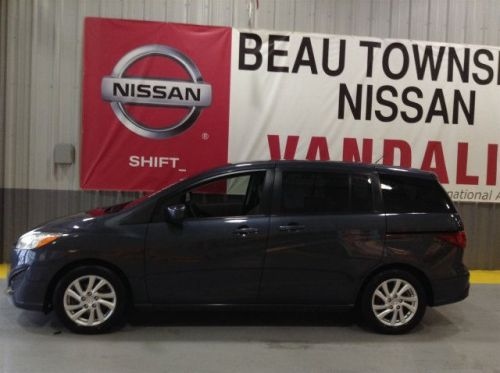 Clean Vehicle History Report. Don't let the miles fool you! Isn't it time for a Mazda?! Mazda has outdone itself with this wonderful-looking 2012 Mazda Mazda5 and at this price, you won't find one in better condition! This is a fantastic one-owner Mazda5 and it's ready for you to take home today. No sordid history on this one-owner creampuff. FREE MAINTENANCE! Get scheduled maintenance for 2 years or 24,000 miles on Certified Pre-Owned Nissans. Exclusive online offer. Contact us through Cars.com about this vehicle to confirm availability and receive your maintenance certificate. Certificate must be presented at time of purchase for BTnissan Loyalty Plus Maintenance Program enrollment.