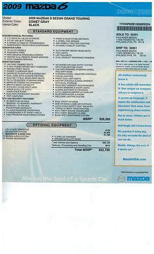 2009 MAZDA 6 GRAND TOURING SPORT 3.7L 272HP FULL LOADED W/ NAVIGATION SYSTEM 50,589 MIL.COMET GRAY EXTERIOR END BLACK LEADER INTERIOR. THIS CAR IS FULL EQUIPPED WITH NAVIGATION SYSTEM, BOSE AUDIO PREMIUM SYSTEM, BLUETOOTH AUDIO&PHONE,KEYLESS ENTRY, KEYLESS START ENGINE AUTO ON/OFF XENON LIGHTS, LED TAILLIGHT, RAIN SENSING WINDSHIELD WIPERS ,BLIND SPOT MONITORING SYSTEM (BSM), AUTO - DIMMING MIRRORS , POWER PASSENGER SEAT, LEATHER TRIMMED SESTS, 6 SPEED AUTOMATIC TRANSMISSION , INDEPENDENT FRONT END REAR SUSPENSION END MANY MANY MORE OPTIONS.IF YOU HAVE ANY QUESTIONS CALL DAREK 732 668 6294. THANK YOU