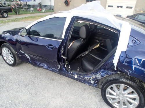 Hello you are bidding on a 2011 Mazda 6 with 30,159 miles. The car runs and lot drives fine. The car is equipped with leather, back up camera, heated seats and many other standard options. The car sustained damage to the left side of the vehicle. The car will need the following parts, both left side doors, center pillar cut, left seat bag, left side curtain bag, plastic rocker cover, wheel and tire, plastic inner liner, and misc mounting hardware and mounting bolts. I pulled the tape back it does not appear to have any damage to the roof of the vehicle. The parts are available for great prices on this car. You can look on car-part or on www ebay com for great deals on new and used parts, great way to save thousands verse buying new parts. The car is being sold as is with salvage title. Please feel free to contact me at 502 817 2972 with any questions that you have. The car is for sale locally and we do reserve the right to end the auction early.