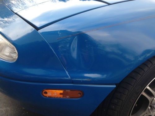 These little Mazda's run great and are extremely fun to drive. This 1990 Blue Miata drives smooth, shifts smooth and all mechanicals operate as intended. All gauges work, interior in good shape, exterior body is in good shape, but does have a dent in the front left qtr panel and scratches and paint imperfections. Rear bumper also does have a crack. i do have an extra bumper (Black) that can go with the car. The Sierra top is almost 2 years old, but did recently develop a 3 inch tear near the top. This can be fixed or replaced with replacement kit for around $60. New one piece tops start out around $165 on Ebay. This is smoke free car. Again this car is being sold "As Is" with NO Warranty, No refunds. Buyer is responsible to pick up or have vehicle shipped within 10 days of Auction end. All funds are due within 7 days of auction end. I accept cash or cashiers check (will release car once funds post to account). |