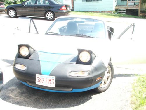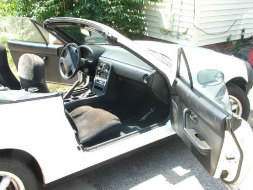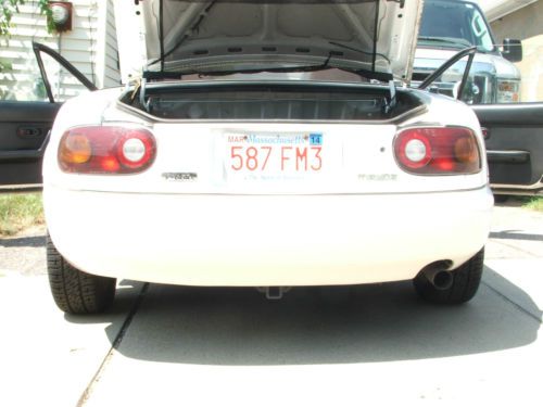 The body has minor chips and dings normal for a 23 year old vehicle. Everything works as it should. This car would also make a great starter vehicle for New England Region Solo (Autocross) racing. Events are held at Devens, New Hampshire Motor Speedway, and other locations in New England. New Tires and battery last year. Good replacement top with clear rear window. No leaks. JVC AM/FM CD player with Aux in. New inspection sticker. Mazda accessories included: Front Bra Rear Trunk Net Rear Wind Screen Boot Bag Boot Cover Tonneau Cover Trailer hitch for bike rack Seat Covers Floor Mats Owners Manual Issues: Front fenders rusted on bottom. Bolt-on replacement fenders are available from E-bay or other sources. Left rear quarter panel rusted. Easy fix. Antenna broken. Replacement antennas available on E-bay. Air Bag light goes on intermittently. Drive the car this fall and fix the fenders this winter! PayPal deposit of $200 due within 48 hours of auction end. Balance to be paid in cash on vehicle pickup. Note: I am away on business Mon - Thur each week. Pickup will have to be made on a weekend. |