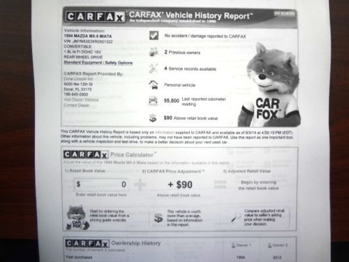 1994 Mazda Miata 55k Original Miles Clean Carfax Automatic Power Windows Beauty! on 2040-cars