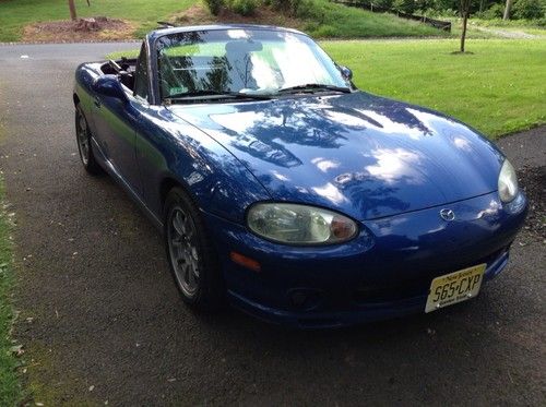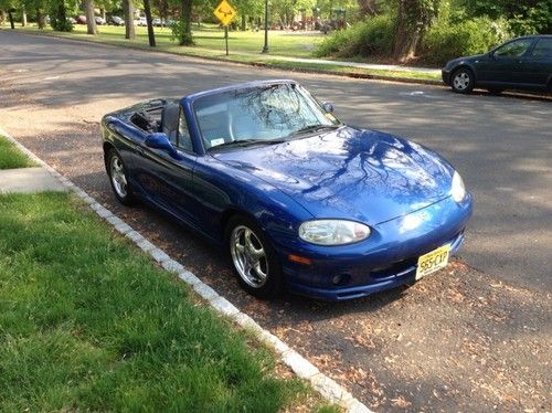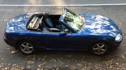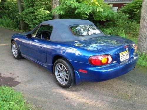 Just in time for Fall. 1999 Mazda Miata 10th anniversary edition in excellent condition with 114k miles. A well maintained original car, needs nothing, driven regularly. It was just tuned up and oil changed in both trans and engine with synthetic. Every factory option including 6 speed, Nardi shifter, a/c, ps, pb, LSD , sport suspension, bilstein shocks, pw, pl, cc, Bose CD stereo, etc. Clean car fax, no accidents, all original paint. 30 mpg. New tires, new mazda spec wheels (have original polished wheels also), and mazdaspeed muffler which makes it sound great without being too loud. Handles fantastic. Original top is very good condition. No hard top. Comes with boot cover also. This is a numbered car and will only go up in value. Call Tom 908-294-2863. Deposit due within 48 hours of auction end. No reserve.