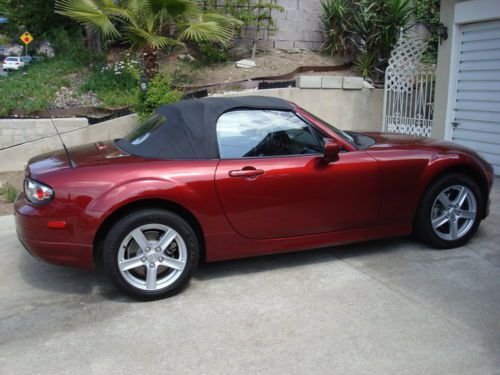 2006 Mazda Miata, Touring trim level. New top and new tires. Previously used for commuting, but weekend driver only for the last three years - been garaged daily since then until our move from CA to IN last week. It was trailered here, not driven. No mechanical issues, regular maintenance and oil changes. Some very minor dings and scratches, consistent with age of car. Passenger's visor is loose and hangs down. Purchased through dealership in 2010, has never been in snow - NO RUST! Buyer responsible for pick up or shipping. If you live in the Indianapolis area feel free to contact us to come see the car!