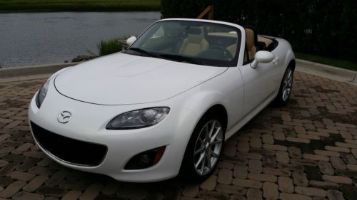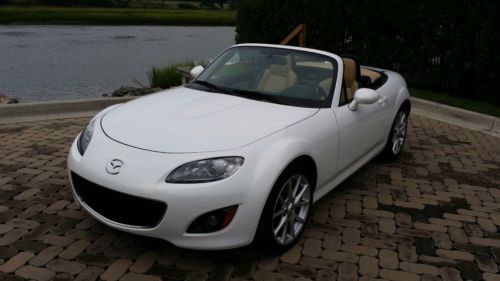 2012 Mazda Miata MX5 Grand Touring This is a Very Rare Car there were only a few made in this color Crystal White Pearl with Tan Heated Leather we bought this car New and it has only been driven by my wife to and from the school where she works car has always been maintained and serviced by Mazda all books and records, window sticker and keys are with the car. We have always kept the car washed waxed, vacuumed, leather has always been kept conditioned car still smells New we are a Non smoker family so car has never been around smoke this is one of the prettiest Miata's ever made we looked all over the country to find a Mazda dealer that had this car when we bought it and the car is just like it was the day we drove it out the showroom Mint condition No problems of any kind ever will be glad to answer any questions you have the car really speaks for itself Thanks for looking. Please don't make an offer if you do not want to buy the car we are going to sell the car to the highest offer a 500.00 deposit will be required within 24 hours of the offer being accepted and car to be picked up within 7 days of auction end unless we work out a later set date. |