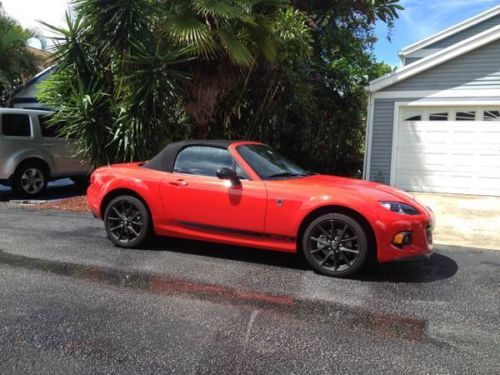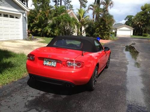 2013 Miata Club Sport, red & black. Stick shift, has cruise control. No issues. One owner, purchased new. 3,512 miles. Garaged by adult owner. West Palm Beach. $21,430. Will lower price $250 every week until sold! Clean title in hand. Options Installed: 4 wheel disc brakes, ABS brakes, AM/FM radio, Air conditioning Bumpers: body-color, CD player, Convertible roof, wind blocker, Door mirrors: body-color, Driver door bin, Driver vanity mirror, Dual front impact airbags, Dual front side impact airbags, Electronic stability, Front beverage holders, Front bucket seats, Front center armrest, Glass rear window, Ignition disable, Low tire pressure warning, MP3 decoder, Occupant sensing airbag, Passenger cancellable airbag, Passenger door bin Passenger vanity mirror, Power door mirrors, Power windows, Rear cargo: trunk Rear window defroster, Speakers: 6, Sport steering wheel, Tachometer, Tailpipe finisher: chrome, Tilt steering wheel, Traction control Only 3,512 Miles Aluminum Wheels Vinyl Convertible Top w/ Glass Rear Window CD/MP3 Aux Audio Jack Leather Steering Wheel Cloth Cabin Height-Adjustable Driver Seat Remote Trunk Release |