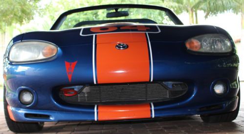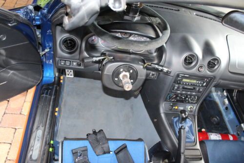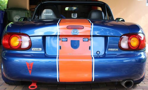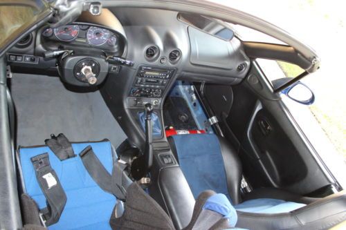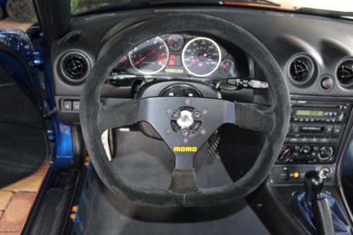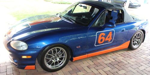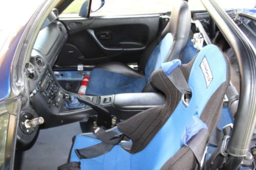 You are looking at a 1999 Mazda Miata - Tenth Anniversary special edition with 50,000 original miles. Car is set-up for HPDE track days with all the following installed within the last 3 years: Hard Dog M2 Sport 4-point roll bar Hard Dog harness bar Ultrashield Rally Sport driver's seat with blue/black cover Driver G-force 6 point harness Racing Beat intake Racing Beat header Racing Beat sport mid-pipe with no catalytic converter High performance ignition wires Spec Miata Suspension (600lbs springs on car for Sebring, 700lbs in box) Mazdaspeed competition motor mounts 949 6UL 15x7.5 wheels with Toyo RA1 R-compound tires Flying Miata metal pedals Spec Miata Floor Insulation quick release Momo steering wheel Stainless Steel brake lines Removal vinyl decals In addition, the car includes the original street wheels with a brand new set of Toyo S. Drive tires so you can drive to the track or get more acquainted with the car on track. A/C and Bose radio are stock and work as it should making it easy to drive to and from the track in comfort. Car