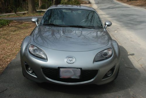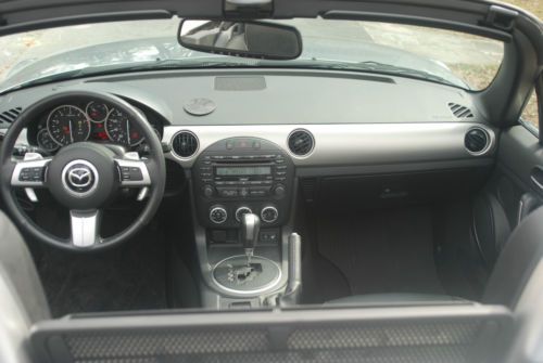 I am the original owner of this Mazda MX-5 Miata Grand Touring (top of the line), purchased in May 2012. The car now has only 9349 miles. It has a power retractable hard top, a 2.0L DOHC 16-valve 14 VVT 4 cylinder engine producing 158 HP and a 6-speed auto trans with manual shift mode. Also: 17-inch alloy wheels, clean AutoCheck, front air dam, side sill skirts, optional door sill trim plates, rear underskirt, rear wheel drive. Front and rear stabilizer bars, optional door guards, 205/45R17 high performance Bridgestone tires, dual exhaust, power retractable hard top, tilt leather steering wheel with cruise and audio controls, power door locks and windows, rear center console storage, premium all-weather floor mats, auto dimming rearview mirror with homelink, sport-tuned suspension, Bilstein shocks. Still plenty of time left on the 36 month/36,000 miles “bumper to bumper” warranty and the 60 month/60,000 mile powertrain warranty. Car comes with Mazda's 24 hour roadside assistance, anti-lock brakes (ABS) with EBD, tire pressure monitoring system, front ventilated disc brakes; rear solid disc brakes, Xenon headlights, Glass rear window with electric defogger, silver seat back bar trim, fog lights, chromed aluminum fuel filler door, door edge guards with MX5 logo, wheel locks, auxiliary audio input jack, AM/FM/MP3/6-disc CD changer, Sirius satellite radio, BOSE premium audio system with 7 speakers. Remote keyless entry system, heated black leagther seats, leather shift knob, leather trimmed hand brake, trip computer, auto air conditioning system, dynamic stability control, traction control system, advanced dual front and side airbags, anti-theft engine immobilizer, side-impact door beams, Bluetooth hands-free phone system, ashtray.