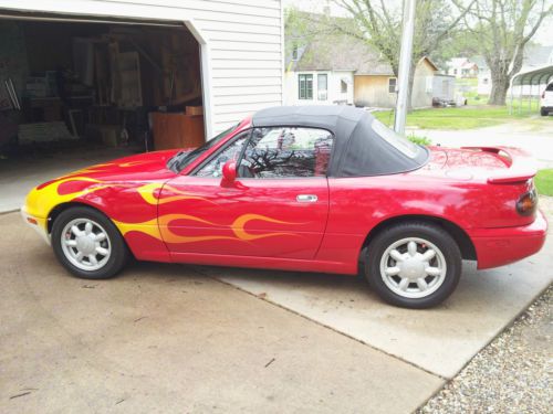 What you are looking at is an exceptionally maintained 1993 Mazda MX-5 Miata Roadster. This car has been garage kept for it's entirety, and has never been driven in snow during the winter. Only a responsible adult driver has ever been behind the wheel. Maintenance up to date, no cosmetic defects. Custom red leather interior with beautiful rosewood dash and console. Minimal wear on the interior, no scuffs or tears. Less than 36,500 well maintained in town and highway miles. Supercharger engine provides a really smooth and fun ride while also quenching your thirst for speed. This car is a looker! |