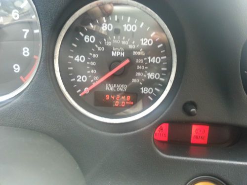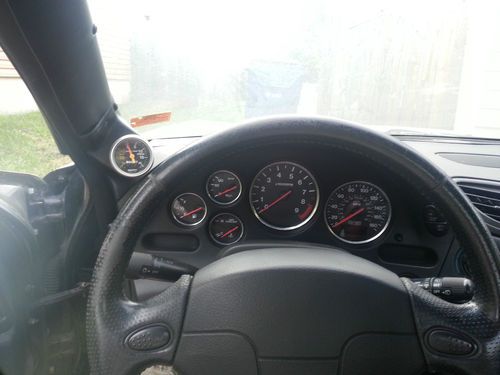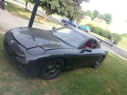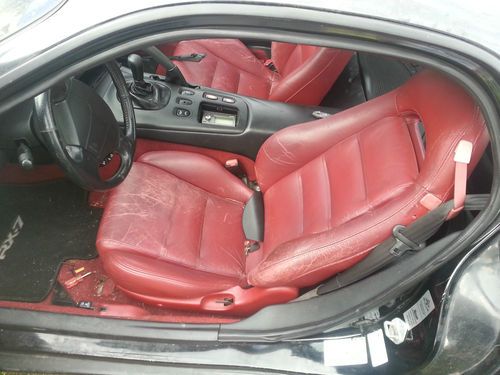 1994 Brilliant Black Clear coat color Touring model with 5 spd RX7. the motor has dead compression on both rotors. NON RUNNING. Previous Owner had spray tinted the taillights and corner lights. has had professional work done to it though, has an Apex GT intercooler, with the Apex inlet pipes. a Fluidyne Radiator, and the ECU was tuned by Pettit Racing. There does seem to be an issue with the ECU but I spoke with Pettit Racing and they said they could fix it fairly cheap and have it back within weeks. A full Racing Beat exhaust system is on the car. Along with 1999 Turbo y-pipe. I bought this to do some work on and fix up, but I just don't have time or money now. Very little damage to the body can see a crack on the rear fender. Also someone had put a cheap aftermarket wing on the back. The body has less than 95,000 miles on it and is straight and carfax showed no collision damage done to it. The top of the dash has some cracks in it above the gauges (shown in pics). Has red seats and red carpet for interior. The battery was moved to the bins when the Intercooler was put in. so passenger side bin holds the battery (see pics). I did a compression test and only one face on each rotor holds compression. A great project for a rotary fan, I just can't afford to keep it. If you have any questions feel free to message me, I will be honest and answer to the best of my knowledge.