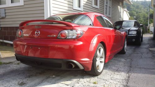 I am selling my 04 Mazda RX8. As title says it is a GT w/ sport package. 6 speed manual tranny. currently under 47,000 miles. I had some regular maintenence done this summer including a new battery, plugs, wires, coils, tires, fluids, and a fresh alignment. Also replaced the starter with the recommended upgrade 2kw "z" series starter. My car starts, runs, and drives like it did just out of the showroom. It does not have any of the flooding issues or slow starting issues you may have heard about from other RX8 forums. I have taken every measure to ensure this car is in top shape for me, and now the next owner. You are welcome to come see and go for a ride in person with just a phone call so I know who to expect. No surprises here. My name is Dan 304.281.4423 The car has black leather interior. Heated seats. Power everything. Multi-disc premium sound package. Navigation. the works......Very reliable and very fun to drive.