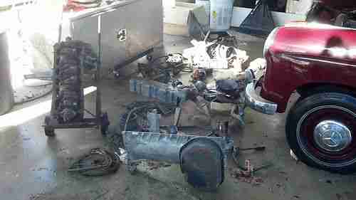 There are two cars for sale in this auction. The first is a 1957 Mercedes-Benz 190 Pouton. It has a 4 cylinder rebuilt gas engine, a European steel sunroof. The engine does run but the car needs brakes. The car has a manual transmission with column shift. The car needs a gas tank, side windows and minor cosmetic work. There is no rust on this car. The Car comes with many extra factory engine parts.