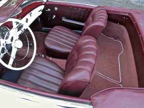 Mercedes Benz production records show that 3792 190 SL’s, Chassis nos. 10019740 through 10023531, were made in 1961. So this is a car built in 1961. It was first sold in April 1962 by a dealer in Portland, Oregon and was serviced by the dealership until February 1963 at which time the car had 15,421 miles. Current owner purchased the car in 1982 from a California woman through a private auto mechanic when it had 50,800 miles. It was reported that the car was garaged for a number of years following the death of the husband and this accounted for the low mileage. The engine was overhauled at 86,766 miles in 1987. In 2004 the car was stripped bare (no rust was evident) and repainted (in the original color) and the bumpers rechromed. The seats and carpeting have been redone and the convertible top and its leather cover have also been replaced. In other words, no effort has been spared to maintain the car in its original condition including original solex dual carburetors, clock and Becker radio. The odometer reading now is 150,216.