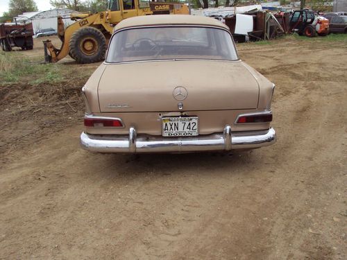 1964 MERCEDES BENZ 190D IT RAN WHEN IT WAS PARKED ABOUT TEN YEARS AGO WE BOUGHT IT WRECKED THINKING WE WOULD FIX IT BUT NEVER GOT AROUND TO IT . IT DOES STILL ROLL OVER I THINK MOST OF THE PARTS TO REPAIR IT ARE IN THE CAR YOU COULD FIX IT OR USE IT FOR PARTS I HAVE A LOW RESERVE ON IT ANY QUESTIONS CALL 701-290-4297 THANKS