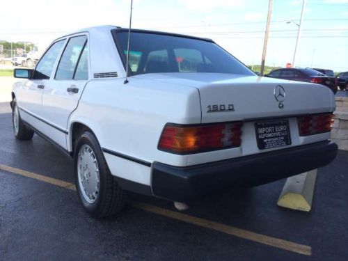 This car is just amazing! Here is the one that you have been waiting for! A 1986 Mercedes-Benz 190D Diesel with some incredibly low mileage! You'll fall in love with the timeless Mercedes-Benz styling! Just look at the bold appearance that this car makes up front! This car's condition is nothing short of impressive. These appear to be the original headlights and grille. Most of these are beat up and pitted. This one looks, feels and shines like new! The grille has no real flaws in it! This car's quality really speaks for itself. You'll really be proud to call this car your own! Just look at how nice this car looks! You'll fall in love with the paint on the outside. It really does look incredible! Just look at this beauty! This is the car to have! The large 2.5 liter Diesel engine mixed to the timeless style of the classic Mercedes-Benz 190D Class! These Mercedes cars have a timeless look that you can't get with any other car! Those well defined lines really make the car distinctive! This car really is irresistible! Just look at how nice everything is! This really is a beauty! There are no real flaws on this beauty. It's just incredible how nice this car is and how careful of an owner this car had. They drove it sparingly, and drove it with care. You couldn't ask for more! You'll love the looks of this classic Mercedes-Benz. This car is a prime example of a soon to be classic body style! Just look at the reflection! This car really is clean! You'll be very pleased with the condition of the car's paint and body! The paint still shines nicely! The paint still looks incredible all the way around! For this car to look this nice at 26 years old it took an incredible effort from the car's previous owner. And it has paid off. You have an opportunity to purchase a beautiful classic that's just at the beginning of its serviceable life, not at the beginning of the end! Just look at that paint! Most of these car's bodies are all dinged and beat up. Not this one! The body and paint are still very presentable! Just look at this car's body! There are no excuses with this beauty, it's all there! The car just looks beautiful from every angle, even from the back! You have the badge on the back so everyone knows that you're driving this highly desired 190D Diesel sedan! The car does have a very good set of tires matched to a beautiful set of Mercedes-Benz alloy wheels! The wheels still look great! You won't have to worry about tires for quite some time with this car! Just look at this car's body! It still looks great! Plenty of tread! You'll have plenty of room for whatever you need to store back here! This car is very versatile and is well suited for whatever you need to do in it! Notice how clean this car's trunk is! Full sized spare underneath! The doors still look the same as the day they were new! No kick marks from getting in our out of the car! Just look at them! These door panels are tight and true! This car was driven with care! Here's your first look into this incredible car! It's still as nice as it was when the car was brand new! You'll be completely stunned with how nice this car's interior is! It's just amazing how nice these cars can be when you have a careful, non smoking owner! It's every bit as nice as you'd expect for this kind of low mileage! The driver's seat is in still in impeccable shape! This car will not disappoint! Just look at how nice it is! The passenger's side is also incredible! The doors are spotless! You won't believe how nice this car's interior is until you sit down and take a look at it!