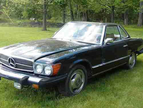1975 Mercedes 450SL roadster, This car came from an estate, it has been sitting about 10 years. It does not run, there is a wiring problem with the car. The previous owner started to restore it,he was in the process of painting it, he was an amatuer what he did was not a good job. When we got the car it was still taped up. The car did run and was driven to where it was parked. The body is in good shape. other than a couple of dents on the hood, the body is strait There is no rust out on the car, the floors and rockers are solid. The car has both tops, the convertible top is in decent shape. The interior the seats have ware the dash pad has a crack, there is a molded carpeted piece on the dash pad.The inside could use a good cleaning. This car is a prodject, that can be restored of it can be a very good parts car. There is a reasonable reserve so bid to own. If you have no feedback please email me before bidding.