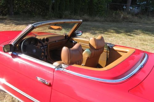 1974 Mercedes 450 SL convertible roadster, two door, two seat model (no back seat), red exterior with tan interior and newer black soft top (no hard top). Only 96,589 original miles, 4.5L, V8, automatic, runs great, excellent paint and clean interior. Body is straight, very minimal rust, if any. Tires, wheels and brakes are in good condition. The A/C so it will probably need a recharge and currently the heater choice is on or off, although I'm told this could be fixed with a replacement heater valve switch. Garaged in the winter and driven on fair weather days. Overall this is a nice vintage car offered at a very reasonable price. I have owned this car for two and a half years, but my job hours were reduced and I can’t justify keeping a second car. More pictures are available upon request of any parts of the car. Please ask any and all questions prior to bidding. Please email your phone number if you want a call back or to schedule a viewing or pre-purchase inspection. Winning bidder to pay a $500 deposit within 48 hours of auction ending and balance due within 1 week of auction ending in the form of cash or a cashier’s check upon mutual agreement of final payment method. Note: All information is provided to the best of my knowledge and is not a guarantee since I am not an expert or a car dealer. I encourage you to view the Mercedes in person or arrange for a vehicle inspection prior to the end of the auction (this will be at your expense if you hire someone to perform the inspection) as the final sale is ‘as is’ due to circumstances beyond my control once the vehicle changes ownership. If you are the high bidder and unable to inspect the car before auction close, you or an agent will have three working days to inspect the Mercedes after the close of the auction. I reserve the right to cancel the auction early as the Mercedes is also being advertised locally. Thank you for reading and for considering this auction.
