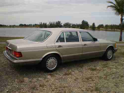 You are viewing a beautiful 1987 Mercedes 560 SEL, which is a 2 owner car that has all original paint and only 68K miles. The car's exterior color is smoke silver, and the interior's color is a natural brown leather. The original paint is in excellent condition and shines like new. There are no scratches or dents. The interior leather is soft and supple and looks brand new. There are no cracks in the wood or dashboard. The carpets are also in excellent condition, and the headliner is in perfect shape, as well. Everything in the interior of the car works as if it were still brand new. (i.e., power windows and sunroof, cruise control, antenna, rear heated seats and power seats ) The climate control switches from ice cold AC to hot heat. Mechanically the car is very sound. It has only 68K original miles and just had recently had its 60K service completed. It has new valve cover gaskets, new spark plugs and wires, new fuel filters and air filters, new belts and hoses, as well as anew hood pad. The car has Bridgestone tires, and the brakes are also in excellent condition. I also just replaced the rear shocks which are self leveling and in perfect working order. These cars are becoming a very difficult find with these kind of low miles and in this great condition too with all original paint and an interior that is exceptional in every way. Recently, I drove the car 800 miles on my trip back from Atlanta where I purchased the car. It drove amazing, and the steering was very tight. I also got an amazing 25 mpg on the highway with the cruise control on. I have a folder full of services completed on this car from the previous owners, and have the books it came with along with 2 keys, and the original window sticker too. In the trunk, you will find the original tool kit and the spare tire is a brand new Michelin that was updated to match the original and has not dry rotted from age. The only thing that is not original is the radio. It has a very nice Sony CD player that sounds great and has a remote. I will replace it with an original for anyone that purchases the car if they don't want the CD player. I am pricing this 560 SEL to sell and it will be appreciated by whoever buys it as I feel it's one of the nicest cars out there. I researched recently the same car and color with 29 k miles, and it sold on Ebay for 23K. I feel this car is a deal, especially for the price that I am asking. Bid with confidence and please read my feedback . I take pride in selling great cars that don't need any service and cars that carry original paint and beautiful interiors. Please call me if you have any additional questions. Steve 954-464-3515