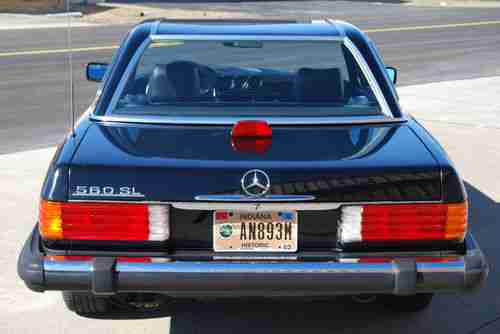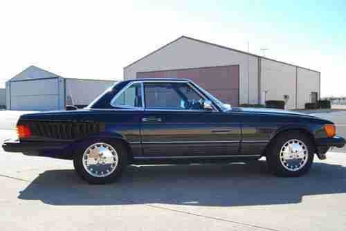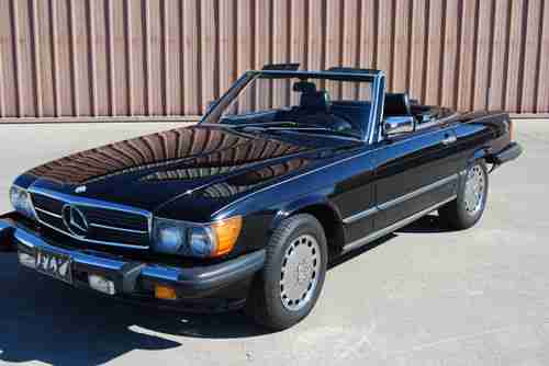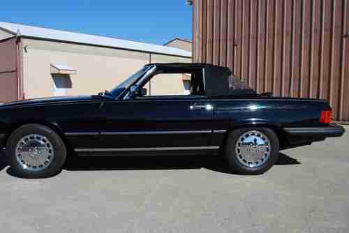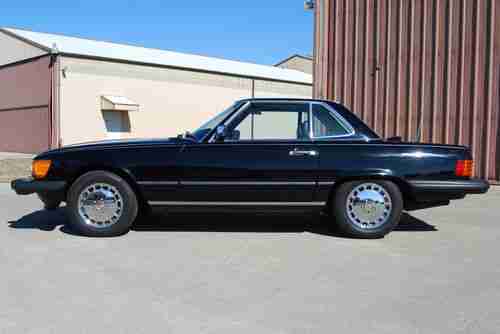 Mint Condition California rare triple black 560SL convertible. This car was purchased from the original owner in 2009 and has 94K original miles. New soft top. Like new hard top. Like new high end Michelin tires. Serviced, all fluids fresh. Has all weather mats, kinder seat, new Kenwood stereo, Alpine speakers, and speaker box for rear. Everything works as it should and runs and drives smooth. Stored indoors, Lady driven in nice weather, and meticulously maintained by pilot husband. You won't find a better example of this mercedes classic anywhere.