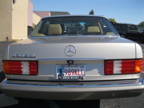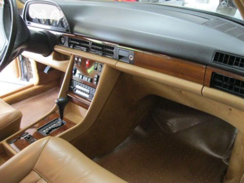 THIS 1987 NUXURY MERCEDES, 500 SERIES, WAS SOLD NEW FOR $55400 IN 1987. IT COMES WITHE EVERY ORIGINAL PAPAR WORK LIKE BILL OF SALE, ALL KEY BOOKS AND RECORDS WITH MILLAGE, THE METAL PLATE WITH THE NAME OF FIRST OWNE, PRE-INSPECTION DELIVERY FORMS, BOTH LEATHE KEY COVER, 4 KEYS AND MOORE. THE MILES ARE WELL DOCUMENTED WITH ALL SERVICE WORK AND RECORDS UP TO DATE. I RECENTLY INSTALLED 4 NEW MICHELIN TIRES, BEW BRAKES AND FACTORY ROUTERS. THE AC HAS RECENTLY BEEB SERVICED AND PROFESSIONALLY UP GRADED TO R134. EVERY PARTS USED ON THIS CAR IS FACTORY OEM. THE CAR IS ALL ORIGINAL, NO PAINT WORK OR DAMAGE . IT IS A NONE SMOKER. IT DRIVES NICE AND STRAIGHT. YOU WILL BARELY HERE THE CAR RUNNING. IT IS ABSOLUTELY QUIET WIH EUROPEAN ORIGINAL EXHAUST SYSTEM. THE SPARE AND JACK HAVE NEVER BEEN USED. THE PAINT IS LIKE NEW. IT HAS BEEN GARAGED KEPT. I HAVE MADE SURE THE NEXT OWNER DOES NOT HAVE RO SPENT A PENNY ON THIS CAR FOR A LONG TIME AND I HAVE KEPT IT ALL ORIGINAL. ALL RUBER PIECES LIKE, WEN SHIELD WIPER BLADES AND HEADLIGHTS WIPERN ETC ARE ALL NEW. IT HAS COMPLETELY BEEN SERVICED AT MERCEDES DEALER IN OKC. I HAVE CHANGED FILTER, OIL AND FLUSHED ALL FLUIDS. YOU CAN GO OVR THE CAR WITH A MAGNIFIER AND WILL NOT FIND A DING OR SCRATCH OF ANY SIZE. IT GIVES YOU THE BEST RIDE YOU CAN IMAGIN. ALL SUSPENSION IS IN NEW CONDITION. THE CAR HAS BEEN DRIVEN AT LEAST ANCE OR TWICE A MONTH. I AM THE FOURTY OWNER. THE REASON I AM SELLING IT IS BECAUSE I DO NOT HAVE THE ROOM AND I DO NOT HAVE THE PATIENTS TO TAKE CARE OF IT. AT MY AGE THIS IS NOT EAZY. I doubt there be another 1987 420 this clean and well taken care of anywhere. IF YOU HAVE ANY QUESTIONS, PLEASE CALL ME 4058197778. OR PLEASE E MAIL ME. THANK YOU SHOUREH