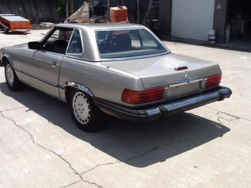 1988 MERCEDES 560SL, HAS HARD TOP AND BRAND NEW CONV. TOP, NEW SEAT COVERS, ARM REST AND HEAD RESTS, CARPET LIKE NEW, RUNS AND STARTS GOOD, PREVIOUS OWNER SAID IT HAS JUST HAD A REBUILT TRANS INSTALLED, IT DOES DRIVE & SHIFT GOOD. GLASS ALL GOOD, ELEC. WINDOWS WORK, LIGHTS, TURN SIGNALS, BRAKE LIGHTS. HAS AFTERMARKET RADIO, HAS HEAT INSULATION INSTALLED UNDER SEATS, FLOOR AND TRUNK METAL IS GREAT, CARPET IN TRUNK IS LIKE NEW, NEW STAINLESS STEEL WHEEL ARCH TRIMS, HAS FULL CAR COVER, HAS MOST OF INTERIOR AND DOOR WEATHERSTRIPPING REPLACED, AND WHAT HAS NOT BEEN REPLACED, WILL BE IN THE TRUNK ALONG WITH MISC PARTS AND (2) NEW OIL FILTERS.