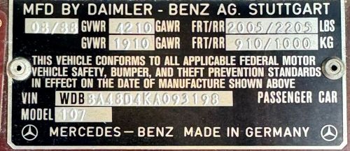 VIN (Vehicle Identification Number): WDBBA48D4KA093198