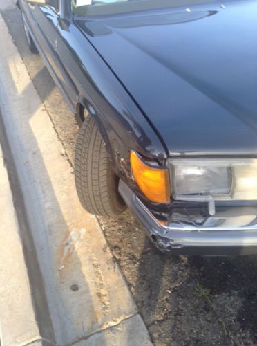 1989 Mercedes 560sel. Clean interior, 177,000 miles. All windows work, power/heated seats front and back. Car was hit in the front in a hit and run, so there is some damage to the front passenger side (as pictured.) Brand new tires (including spare) just put on. Sunroof and air don't work (both of which could be easy fixes.) The interior is clean, no cracks on the dash or tears on the seats. Dual airbags, CD player with aux input. Any questions, please ask. Thanks for looking!