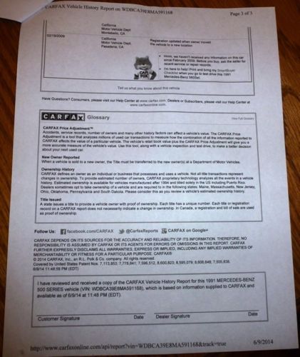I took the car for the weekend and was very pleased. Starts right up, no extra noises while starting, running or driving. Handles the speed bumps and driveways solidly. The power and pick up that Mercedes intended it to have is definitely there. On a 102 degree Sacramento day I had to turn the AC down mid trip because it was too cold. Sunroof, windows, seat switches, radio all work… Ready, safe and reliable enough to drive cross country. And, that concludes my official “Car and Driver” Report.