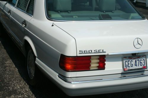 This car is in excellent condition with 164, 500 miles on it. Mileage may vary slightly as I am currently driving the car. The body is great and has no rust. The following items have been done on the car in the last 3K miles - new Michelin Defender tires, new front brakes and rotors, new front struts/shocks, complete tune-up and full injector carb cleaning, new front headlight and turn signal casings, all new filters, all new fluids, new sunroof track for perfect silent glide when opening and closing, brand new rebuilt transmission, new front ball joints and new idler arm kit installed, alignment, new battery, A/C upgraded to R134 and it's nice and cold, new belts, new radiator fan and housing. Car rides great and has the firm smooth acceleration of the 560 SEL. The interior of the car is spotless and the car is very very clean - just look at the pictures including the drivers side where the seat hass no tears or rips at all. Chrome wheels are in great shape. Paint really shines and interior has never been smoked in - see ashtray pics. All the glass is clean and not damaged. Car is garaged and cleaned and polished regularly. Original first aid kit still in the back window storage box. Reason selling is I am moving. I am selling it locally so I reserve the right to cancel the ad at any time. I will help with the delivery if you're a successful bidder and have a transport company pick it up for you. |