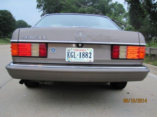 This is a two owner, original Mercedes 560SEC coupe. Has been maintained by MB dealer since new. Complete maintenance and repair records since new. Car has been owned since 1994 by current owner, who is an MBCA enthusiast with a collection of classic and antique Mercedes. This car has never been in an accident except for a couple of door dings and a 2MPH bump on the rear bumper which caused no damage and was repainted at the MB dealer. Car is in almost perfect mechanical condition. Only things needing attention are the cruise control amplifier (common issue) and reconnection of the sun visor mirror lights. Car has an updated Becker CD player radio, but original radio is included in working condition. Also, there are two sets of OEM wheels for summer and winter tires. The interior is also in outstanding condition, with supple leather seats with no tears or rips. Trunk is likewise very clean, with the only issue being where cleaner was leaked into the passenger wheel well depression. The carpet covering can be replaced by any reputable upholsterer on this part for about $150.00 if perfection is sought. John Olson's book, The SL Experience notes that the W126 coupe is the rarest Mercedes produced during the golden years of the 80s, before Mercedes ceased to be over engineered and plastic replaced leather and metal in their line. Less than 2,000 of these cars were made per year, and the 1990 and 1991 models are the last and most sought of this model. These rare coupes are starting to appreciate and will continue to appreciate in the future. This car just floats down the interstate with the most luxurious ride imaginable, better than today's cars. The 5.6 liter V8 provides ample power to do as you please in this car. Likewise, the body structure is extremely strong with no rattles and vibrations. The car has European glass halogen lights mounted, but the original US spec lights will also go with the car. This car offers perhaps the most for the money of any used car on the market today. You can drive it every day, and it will provide many, many years of pleasure. The engine and drivetrain is bulletproof, capable of going hundres of thousands of miles without the need of any rebuild if maintained to MB specs. This car gets lots of attention and thumbs up. The mechanics at the Mercedes dealership will ask you if you want to sell it when you drive in for scheduled oil changes or service. This car can win prizes in local Mercedes shows with all records and original books intact along with tool roll etc. I am selling it only to make room for other vehicles on my bucket list. BTW, this is my wife's favorite car. If you have any questions, I can provide the number of our master MB mechanic, known in the DC area as the Car Whisperer, who can vouch for the conditiion of this car. I am also happy to answer any questions for you--just ring me at 703.799.7465. The reserve is most reasonable. I am only asking a fair price for this classic car and am willing to sell it early based on a reasonable offer. The colors of desert taupe with a creme beige interior are gorgeous in any climate. Additional pictures are available on request. I will assist with pick up of vehicle by commercial shippers.
