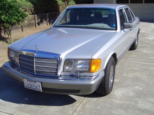 1986 Mercedes 560SEL sedan. I purchased this car in 2002 to add to my personal collection of Mercedes vehicles. I bought it from the original owner, and elderly Asian woman living in Pasadena CA ( that not a folk tale) her name and address are in the original papers which are complete including the "Window sticker" or new car invoice and all of the booklet's and records. The car was sold in Los Angeles CA,and has always been in Califorinia with its original plates . It had accrued 79000 miles at the time and after 12 years in my care had it now shows 83,299 as its been mostly stored with my collection. It has been exercised on a regular basis. I don't wish to over state the condition. The leather interior is still soft with no wear any where with the exception a slight rub mark at the very face (not on top) of the driver lower seat bottom. She had apparently short legs. Carpets, side panels dash ,instruments and wood consol are exceptionally nice. All the records , books and instructions including original "window sheet" are in the glove box. The finish is original and NO scrapes or door dings. The trim and body molding are very nice with the exception of as few very minor spotty upper window moldings in the top rear and has never been in an accident or "fender scrape of bender". The paint is smooth and shiny with some slight haze in a few top areas sighted from just the right angles. Overall a very presentable automobile. The tires are nearly new with factory plated wheels. The spare and tools have never been out of the trunk. The car is very smooth and quite powerful and alwsys properly serviced. I would really like anyone interested in the car to call me-Mike- 9252029880 for a detailed description prior buying the car. I want you too be satisfied and winning buyer or not you don't have to pay for the car if not completely satisfied. I will asssist buyer in shipping arrangements if you wish. It is also for sale locally. There is no reserve I am asking somewhat less than I paid for it. Thanks for watching...