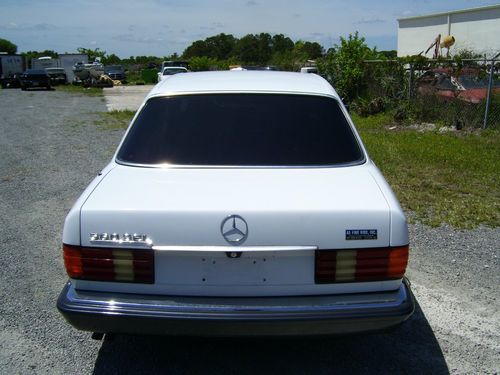 1986 Mercedes Benz 560 SEL sedan,V8 that runs strong, automatic, ps, pb, pw, pl, cruise, tilt, Sunroofff Kenwood stereo CD, excellent tires with factory mag wheels. Has a very nice interior with no rips or tears and excellent headliner. This car runs and drives well and goes down the highway straight and smooth, Very clean body with no rust. Has a bad center arm rest and missing a couple of pieces of trim. The odometer stopped working last week while I was driving it but the speedometer works. Tach does not work all the time. I am a small dealer in Cocoa Florida and you only deal with me. My reserve is just under $1500.