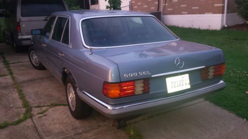 1985 500SEL EUROPEAN SPECS, STRAIGHT BODY, RUST FREE, WELL TAKEN CARE. PAINT IS IN GOOD SHAPE WITH SOME FADING ON TOP & HOOD, LEATHER IN GOOD SHAPE FOR ITS AGE. POWERFUL ENGINE, SMOOTH AND QUIET RIDE. TRANSMISSION SHIFT FLAWLESS, MAINTENANCE UP TO DATE INC. TIMING CHAIN,GUIDES,TENSIONER. NEW PLUGS,WIRES,ROTOR CAP AND BUTTON.NEW TIRES. A/C WORKS PROPERLY AND CONVERTED TO R134. NICE MACHINE PLEASE EMAIL ANY QUESTIONS VIN NUMBER ; WDB1260371A171213