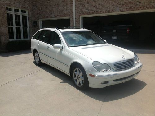 This is a one owner 2004 Mercedes C240 Wagon. White with gray leather interior. 6 disk CD changer, sunroof, cruse control, heated seats, and power windows, seats, locks. Luggage rack, cargo cover, split rear seats.