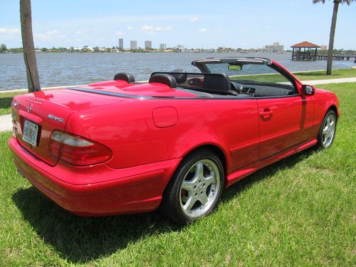 Thanks for looking at our very rare CLK 55 AMG Cabriolet. You see very few of these cars. $79K. window sticker. The exterior of this car is in excellent condition and appears to be 100% original paint. Straight as a arrow up and down the sides. The wheels are all in good shape. No bumper scuffs. The roof is also in great shape with very minimal wear. The interior is very clean and it also shows minimal wear for its age. Has factory CLK 55 floor mats. The wood is all in good shape. The pictures show how nice the interior is. We just did a service on the car with a fresh oil change and a complete safety check. This Mercedes hits the road brand new and can be driven anywhere. Excellent running car. These are the fastest of the AMG group because of the weight difference. This car is soooo fast!! Great sound to it. This car is such a value. Lots of bang for the buck! Feel free to call us at 1 386 295 3886 or 295 3301 and we can try to answer your questions. We do a good job on Ebay, look at our feedback. Thanks and Good Luck!!