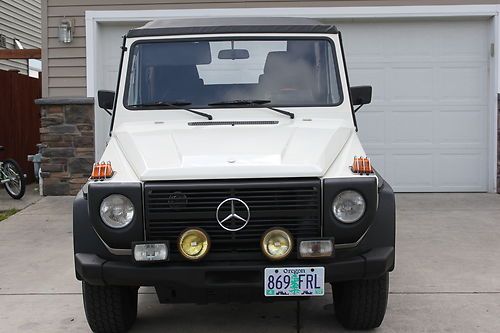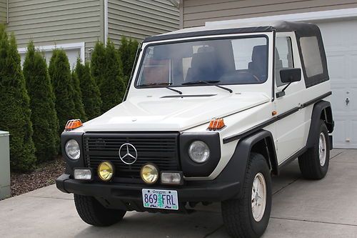 1983 Mercedes-Benz GE280 Cabrio VIN#2BG20628917025738 Up for sale 1983 Mercedes-Benz GE280 Cabrio. The previous owner had owned the car for over 10 years in BC Canada. I had purchased the car from him over two years ago and car had some rust on the back penals under the tail lights and side penals.The rust was cut off and welded the new penals, and the car was painted. The back speakers sounds good only the front one is not very good as the back ones. The car comes with both steering wheels, tool kit, owner manual and first aid kit. The previous owner had instald new muffer and radiator. Soft top has some repair done on the right side and their is a cut on the rear window I had put clear tape over it, and their is one more on the back gate window 2'' long. I had not seen any water the got inside the car.There is a scratsh on the passenger door, I had put some touch up paint. The body on the G is very straight, however this is 30 years old car. In line 6 cylinders, 4 speed manual, 4x4, high and low, lock differential all in working order.The tiers about 60% good. This car is not a race car or driving fast on freeway with a four speed transmission. Odometer is showing 75850 kilometers , however if is 175850 or 75850. The speed odemeter is still in kilometers not in mileas. I had drove this car from Canada to Vancouver WA at 110-120 kilometers in hour with no problems or any vibration. I had use this car aroud town only, never had took it off road. Please look at the photos the are been taking one day before. I had descride the G wagon in best of my knowledge.The car is sold as is with out any warranty or return back for any reasons. You are welcome to do pre-purchased inspections or come and test drive it, before 24 hours the auctios ends. No inspectios after it sold. If you decide to drive the car cross-country you are on your own risk. Please dont asking about the reserve price , the reserve is very reasonable. I'm open to offers to closed the auction early.$500 Deposit is due in 48 hour after the auction ends. Canada or international buyers are welcome. Please ask any qustions by call 503-327-3848 or email or live your phone number I will call you back.