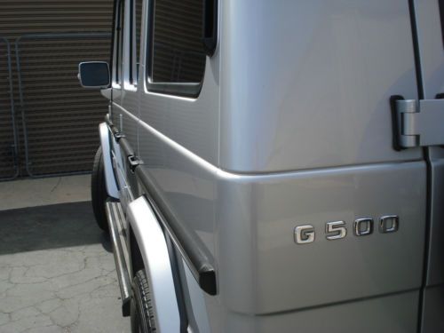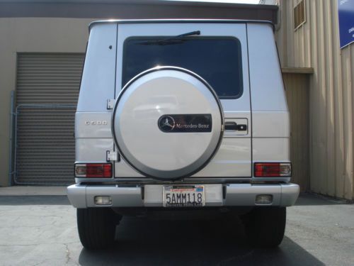 Silver over gray G500 in excellent overall condition. Local Beverly Hills, Ca Hornburg Jaguar trade-in. No signs of abuse and appears to have never been taken off-road. Dealer service records since new. All services up to date. Matching Michelin tires front and rear with plenty of tread remaining. Exterior is in excellent condition with no dings, dents or significant scratches. Glass is pristine. Spare tire cover is excellent with no blemishes or scratches. Running boars and fenders in excellent condition. No signs of corrosion or rust anywhere. No obvious signs of any paintwork or major body repair. Interior is in excellent condition. No abnormal wear or odors noted. Headliner is mint as well as dashboard and center console. All electrical functions work as should. Mechanically sound with no oil leaks. Brakes and tires are good. A-service just completed with new spark plugs and ignition cables (16) . 2 remote keys included. Buy with confidence. We are an independent Mercedes-Benz repair shop and specialize in Mercedes-Benz only. We take pride in servicing these cars and stand behind all the cars we sell. We reserve the right to end auction at any time. Vehicle is being advertised locally and is located in Costa Mesa, Ca. E-mail or call with any questions 714-884-4118. www.pacificcoastbenz.com Buyer pays all shipping fees and any inspection fees related to the purchase of this vehicle. DISCLAIMER: Prices do NOT include applicable sales tax, registration fees, license fees, smog fees, and documentation preparation fees, transfer fees, also any other fees that may apply.  |