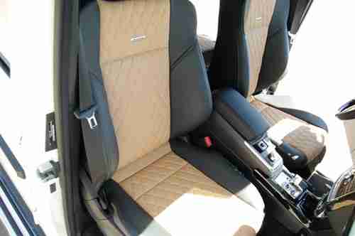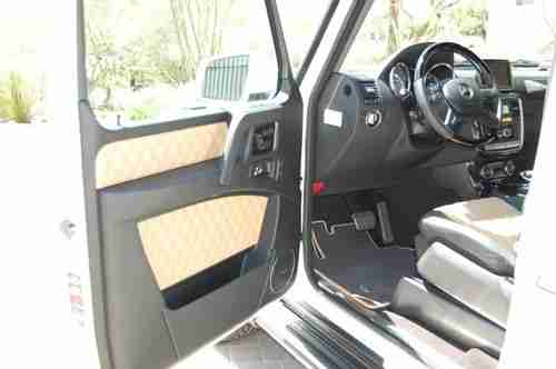 Brand new G63 Designo Diamond stitch/pleated interior ($4950 option) in sand/black, white exterior, black AMG wheels, black piano laquer trim and steering wheel. 92 miles. Has brush guard removal trim kit.