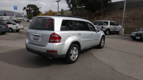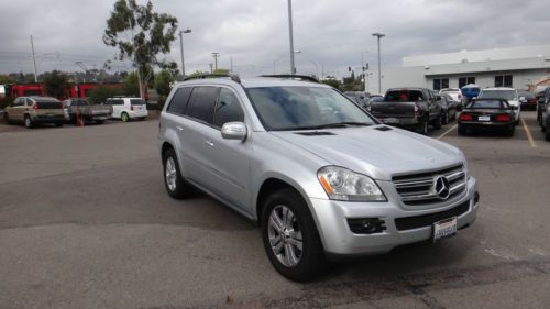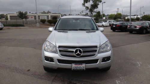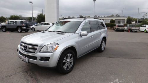 2009 MERCEDES BENZ GL450 4MATIC This is a local one owner, franchise dealer trade-in. It was purchased new locally and serviced by Mercedes at every scheduled interval on time. It has every service documented on its perfect CarFax. It was just serviced less than a month ago. It has excellent original silver paint with NO damage or prior accident history. The leather interior is very good, however, there is wear to the center armrest (see pic). The tires are close to 7/32 0r 70%.and all matching. This vehicle has navigation, back-up camera, harmon kardon logic 7 audio, dual moon roofs, keyless go, heated seats, front/rear parking sensors, and hard to find factory rear entertainment. The mileage is all freeway driven, as the owners lived 40 inland to the closest major town. THIS VEHICLE IS SCHEDULED TO GO TO A DEALER ONLY AUTO AUCTION NEXT WEEK. THIS IS YOUR OPPORTUNITY TO PAY WHAT A DEALER WOULD PAY FOR. Go to kbb dot com or Edmunds to view what these vehicles are selling for, and you will see the incredible value.