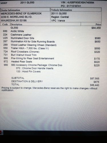 This 2011 Mercedes GL-550 is in great condition and up for quick grabs. There are no issues with this fine vehicle, we are choosing to upgrade. 30k Service completed within 30 days and no service or recalls are due on this vehicle. Vehicle has remainder of factory and certified warranty. Vehicle is also equipped with remote start and gps via smart phone application that can be transferred upon successful sale. Vehicle is subject to prior sale and is cross listed. Message any questions thru e-bay and will do our best to respond quickly, too many scammers as you all have may have experienced. Good luck and happy bidding. |