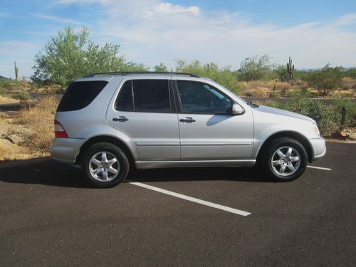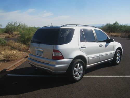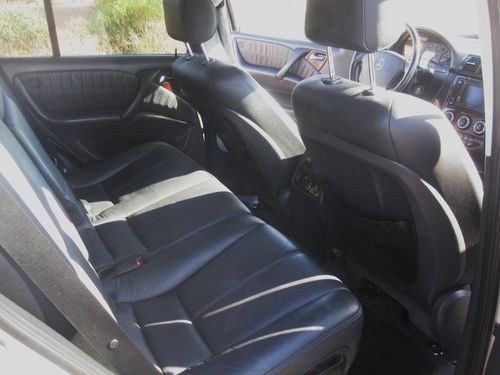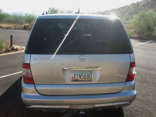 This is a 2003 Mercedes ML500 SUV with no reserve. It has 125,000 miles on the vehicle. It is silver, with black leather interior. I just recently put four (4) brand new Hankook (50,000 mile warranty) tires on the vehicle. I have the paperwork for the warranty from Discount Tire. The brakes were done less than 3000 miles ago as well (Nov. 2012). Everything is is working order, except the key less entry...it needs a new programmed key from Mercedes ($200) for that system to work. It does have a couple dings/dents and a carpet stain in the rear cargo area..as expected with a car of the age.. it has all time four wheel drive..rolls very smooth and comfortable down the highway. I also had a trailer hitch installed this past spring. I have all the paperwork for lifetime warranty for that as well from U-Haul.