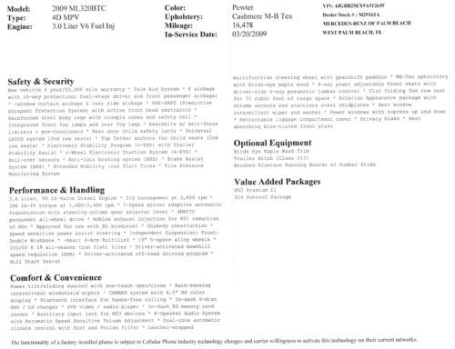 It feels like we just picked this up yesterday, but our family has expanded and we now need a 3rd row. Our loss is your gain! We were really picky about the selection of this car and have used it gently. The vehicle has 2 brand new (receipt attached) OEM runflats up front, and 2 with almost new (I can contact Firestone for exact miles at time of install and check if the road hazard can transfer) out back. The E Service was just performed last week and fuel filter was changed. The CPO is intact and fully transferable via private party sale till 03/20/2014 of next year. Payoff must be made to Mercedes Benz Financial Services.