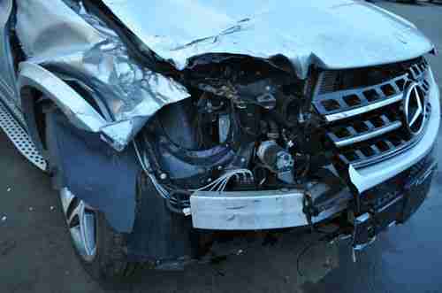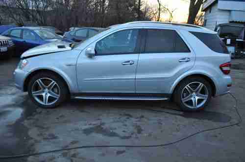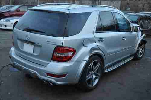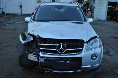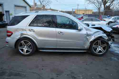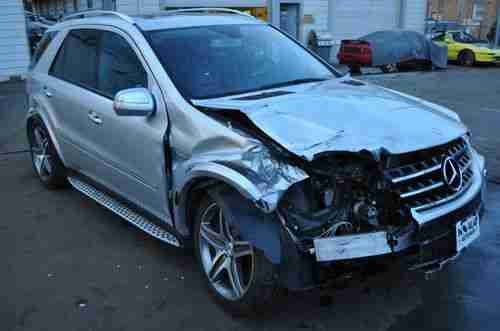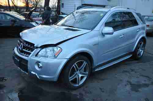 You are bidding on a damaged MERCEDES-BENZ ML63AMG. This powerful & luxurious sports SUV is fully loaded with everything you can think of including power everything, premium package, heated seats, cooling seats, navigation, parking sensors, heated steering, dual climate control, memory seats and much much more. It comes with an amazing color combination of SILVER metallic exterior with an accented BLACK interior. As you can see from the pictures, the damage is primarily to the front RIGHT side of the car, LIGHT HIT. This car has low highway miles of 43k This beautiful SUV starts right up, sounds great, and lot drives(RIGHT CONTROL ARMS ARE BENT)