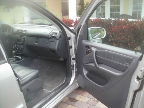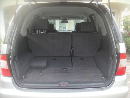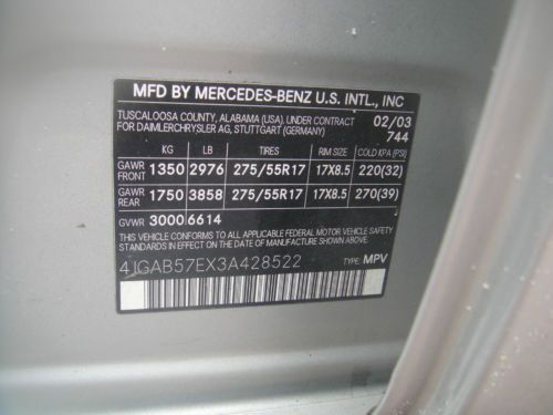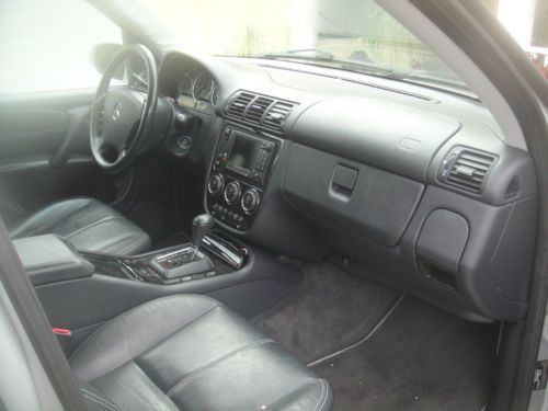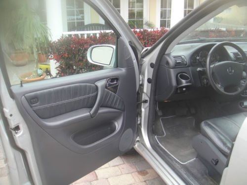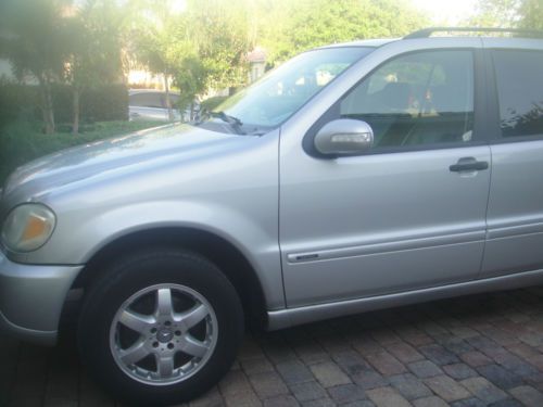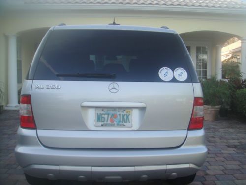 2003 Mercedes Benz ML350 4 Matic 4 dr SUV,All wheel Drive with silver metalic exterior,automatic transmition,leatherette seats,power front seats,heated front seats.Power glass moonroof, leather steering weel trim.Cruse control,AM/FM/CD Audio,automatic climate control,Power windows ,power exterior mirrors, fog lights.Tront chrome guard bumper The interior is stunning black seats are in very good condition, the dashboard is like new.Rans very good but sometimes the three lights are lighting up BAS/ESP, ETS ,ABS.Tires are used 75% .There are small chips and small scratches around the exterior.Air condition needs to be check. The car is still used and overall runs very well.